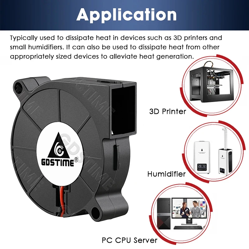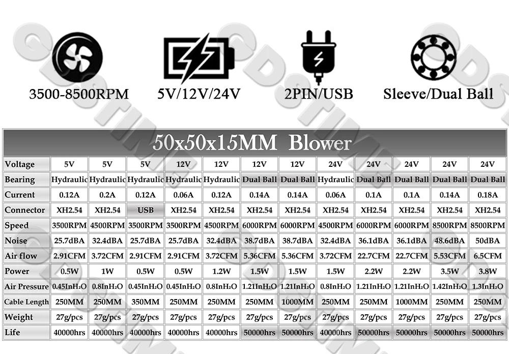 Gdstime DC 5V 12V 24V Fan 50x15mm 50mm 3D Printer Blower
